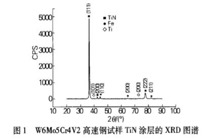 试验数据表明,刀具表面镀覆一层TiN硬质膜后,表面硬度显著提高,抗磨损能力和切削性能大大改善。由于TiN是间隙相,具有高硬度、高耐磨性、高稳定性等特点,同时TiN涂层能减少工具表面的摩擦系数,降低刀具切削刃部的温度,提高工具的加工速度和工件表面质量,因而使刀具的使用寿命成倍提高。这对于难加工材料和高速切削的工况条件,效果更加明显。